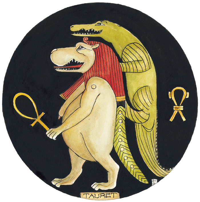 Taueret (de 16/02 a 15/03) – Taueret é a deusa da fertilidade. Protege as parturientes e as crianças, bem como as fêmeas prenhes de todas as espécies. As pessoas nascidas sob o signo de Taueret são liberais, generosas, compreensivas e tolerantes. Têm uma energia espiritual muito forte e podem manifestar dons mediúnicos. Sensíveis ao extremo, magoam-se com facilidade, podendo inclusive fazer verdadeiras tempestades em copo d’água quando percebem que o seu amor e dedicação não estão a ser retribuídos com a mesma intensidade. Podem enfrentar dificuldades materiais porque são pouco hábeis para lidar com dinheiro.