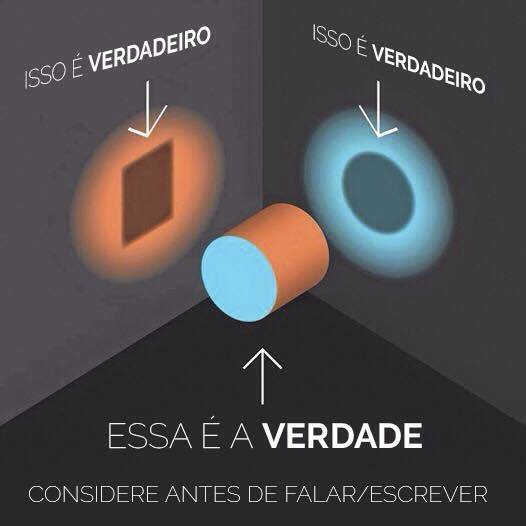 Esta imagem explica como a nossa perspectiva determina o que vemos como “verdade”. Aqui vemos que o que é verdadeiro para mim e o que é verdade para você não são realidades diferentes, mas uma oportunidade para nós termos uma conversa e entendermos os dois lados.
