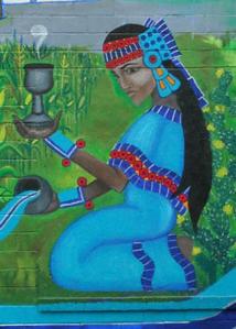 Chalchiuhtlicue é a deusa asteca da água corrente e nascentes, rios e lagos, que traz fertilidade para as colheitas. Seu nome significa “Mulher da Saia de Jade”, ou “Senhora Preciosa saia verde de pedra”. Ela é descrita com nenúfares, vestidos em tons de azul aguado e verdes, e às vezes tem de quetzal-penas em seu cabelo. Ela é a irmã mais velha ou consorte a Tlaloc, o deus da chuva. Apesar de Tlaloc era um deus benevolente, muitas crianças e bebês foram sacrificados a ele. Se as crianças choravam no caminho para ser morto, era um sinal de que a chuva viria, ea população se alegrou.